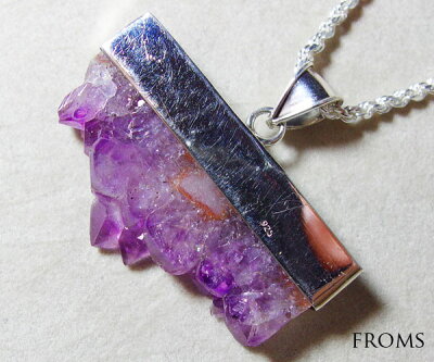 ■石種類・アメジストクラスターカット ■金属部分・ Silver925 ■石サイズ・アメジストクラスター約41x20mm厚み約5mm,全長約35mm、12.6g ※チェーンはオプションになります直輸入1点物スペシャル アメジストのクラスターをスライスカットして、ハンドメイドでシルバーでペンダントにした素敵で印象的なアクセサリーです。